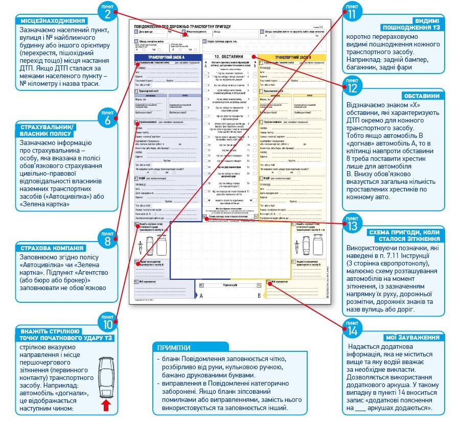 Предположим, вы не знаете языка страны, на территории которой наступил страховой случай. Стоит это указать, а в графе для пояснений отметить «не считаю себя виновным», «не согласен». Если у вас есть свидетели, желательно указать их координаты в документе (имена, адреса, телефонный номер и, желательно, получить их подписи).